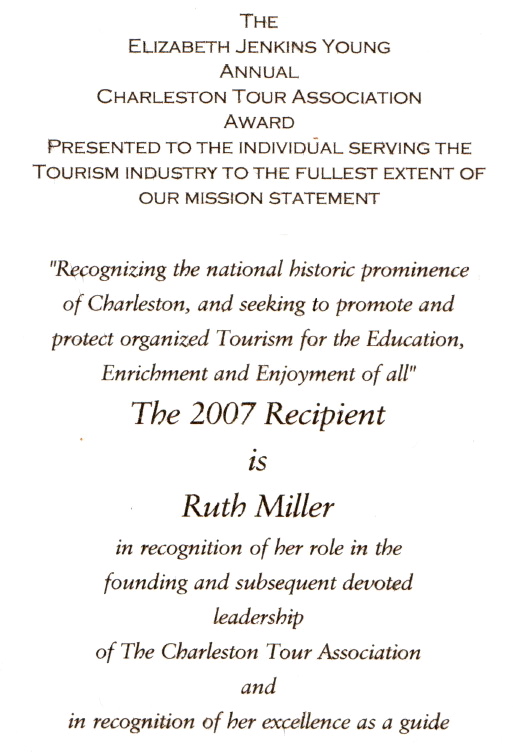 from left to right: Tom Johnson, Ruth Miller, Diane Ball (President Charleston Tour Association), Al Miller (Vice President)